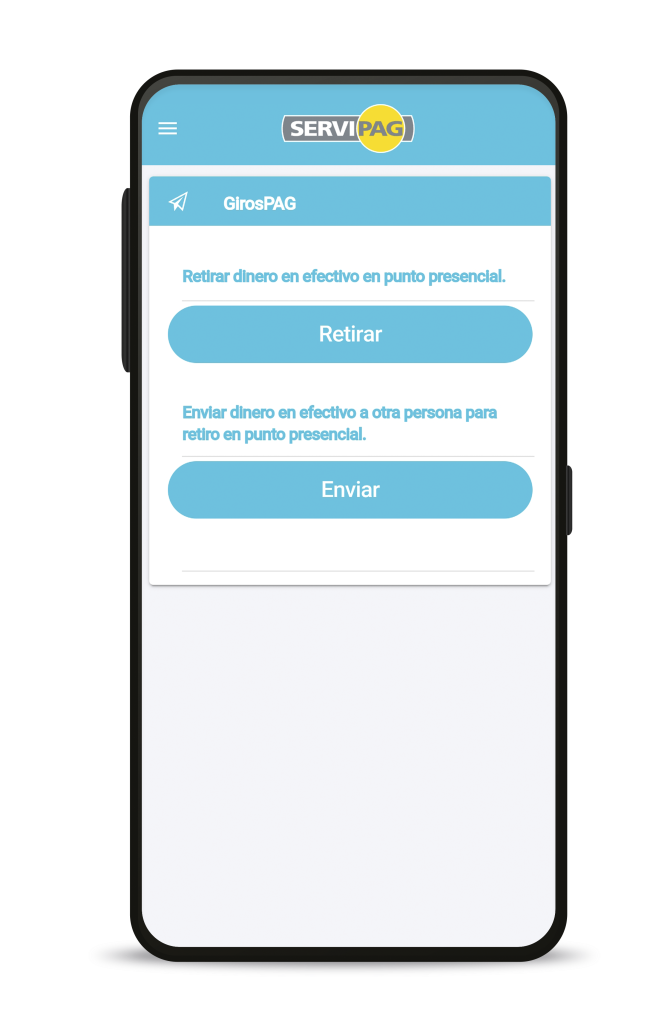Con GirosPAG podrás enviar dinero desde cualquier celular que tenga instalada nuestra APP Servipag y luego retirarlo en efectivo desde cualquiera de nuestras Sucursales o Agencias Servipag Express.​