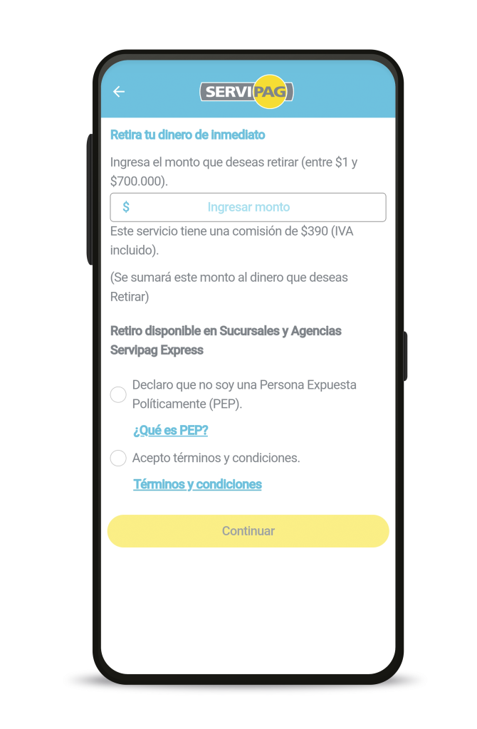 Retirar el dinero es muy simple, sólo necesitas presentar tu carnet de identidad vigente y el código de verificación que aparece en tu APP Servipag al momento de enviar el dinero.