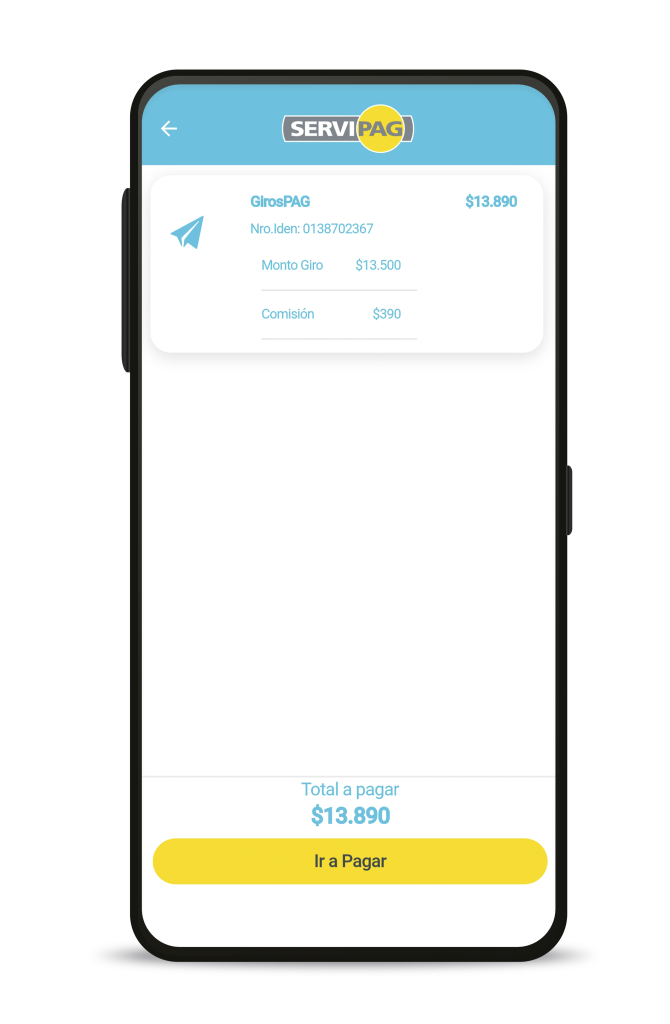 Podrás hacerlo ingresando a nuestra APP Servipag (disponible en Google Play, Apple Store y App Gallery). Ingresa tus datos de cliente Servipag y accede a la opción GirosPAG. Si no estás registrado como cliente Servipag, no te preocupes, puedes hacerlo fácilmente desde la misma APP Servipag.